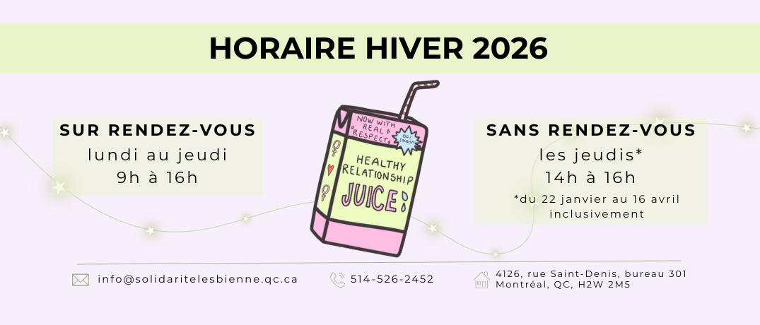Informations concernant l'accessibilité: www.solidaritelesbienne.qc.ca/informations-concernant-laccessibilite/