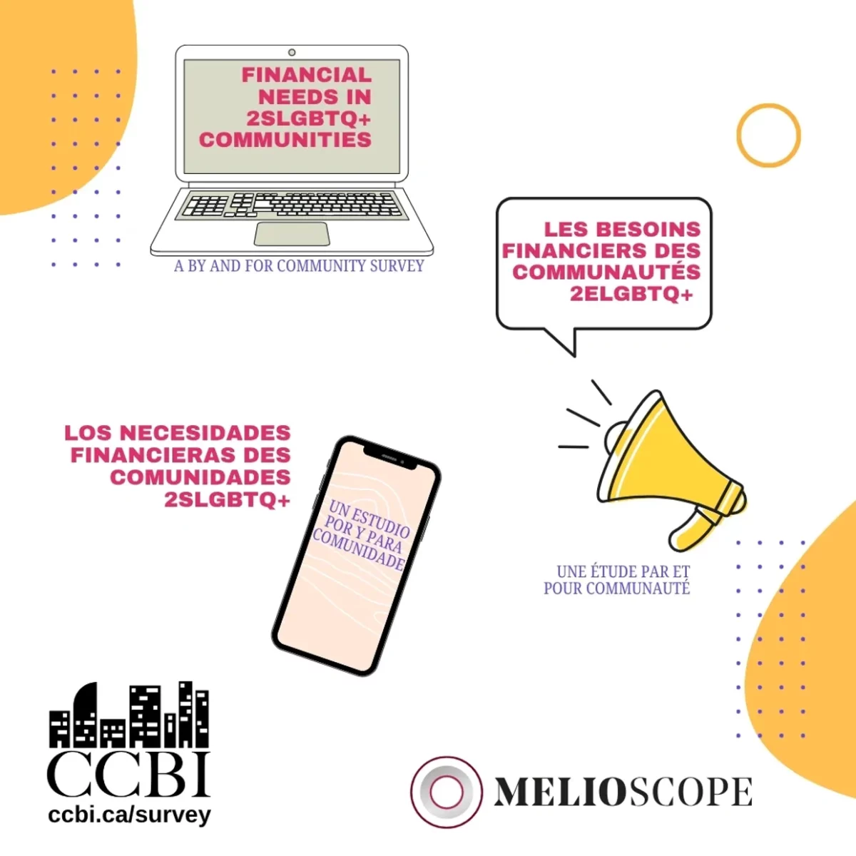 Ce projet de recherche est mené par l’ICRC en collaboration avec Melioscope. L’objectif de ce projet est d’évaluer les besoins financiers des individus et des organisations communautaires 2SLGBTQ+ et allié.e.s afin de leur offrir des services professionnels adaptés ainsi qu’une programmation communautaire pertinente.